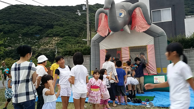 2015年8月香川県施設で夏祭りが行われ、飲食ブース、遊具ブースをご提案させていただきました。あいにくのお天気でしたがたくさんのお客様に来ていただきました。