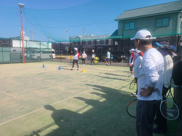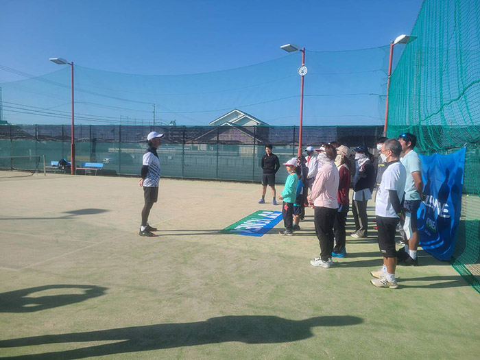 この日は雲ひとつない快晴で、まさにテニス日和。ゲストに本村剛一プロを招かれスクールの生徒さんが特別レッスンやお楽しみゲームもあり…あこがれのプロ選手を前に少し緊張もしながらとても楽しまれていました♪